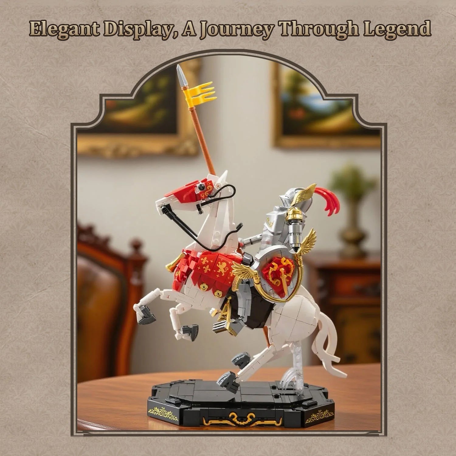 Die Pferderüstung und die stabile Ausstellungsbasis sind mit authentischen europäischen Mustern verziert, die per Tampondruck aufgetragen wurden – ein Beweis feinster Modellbaukunst.